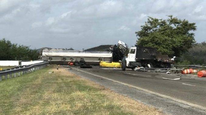 Cierran Expreso PR-52 por camión de gasolina volcado